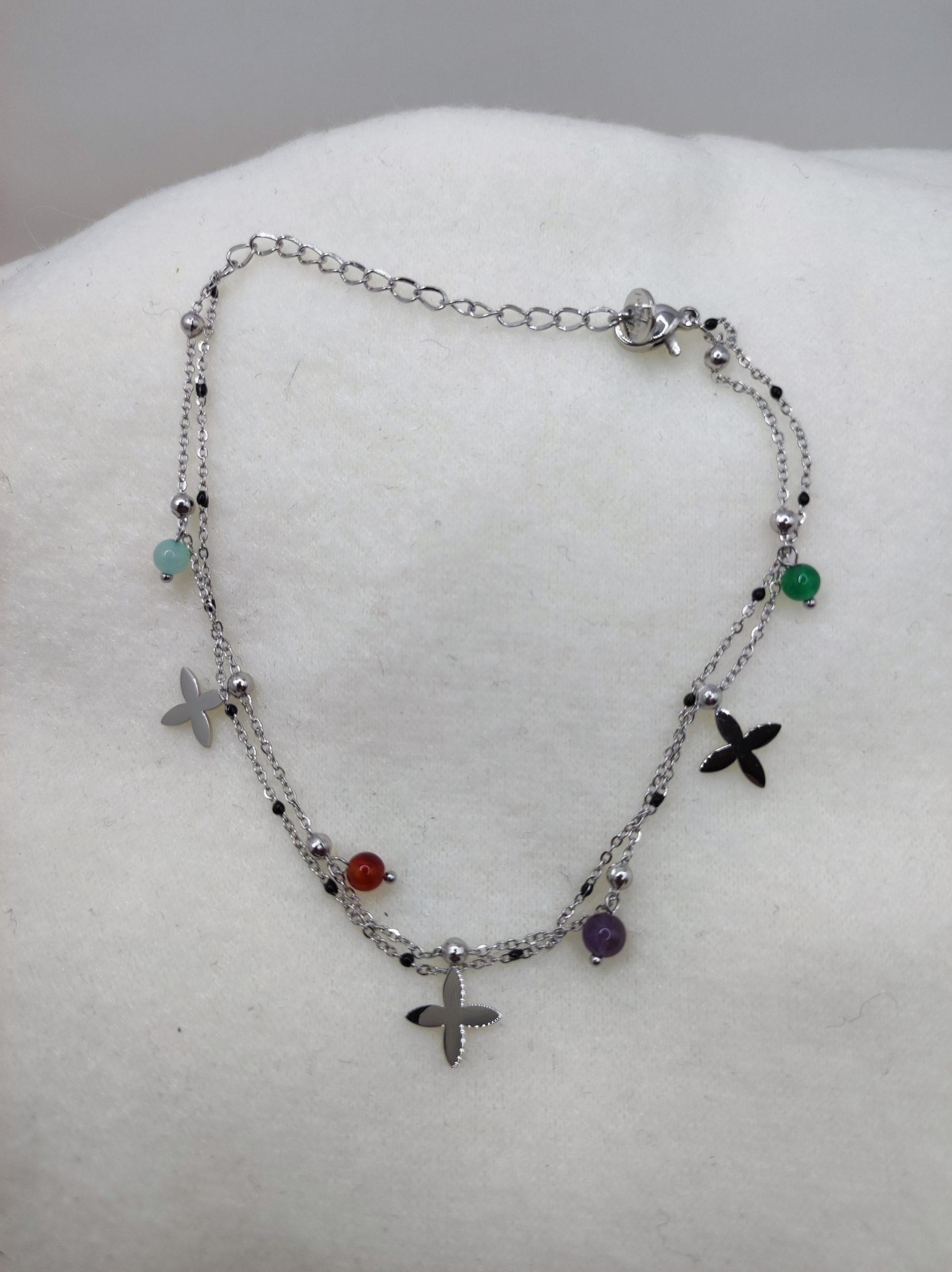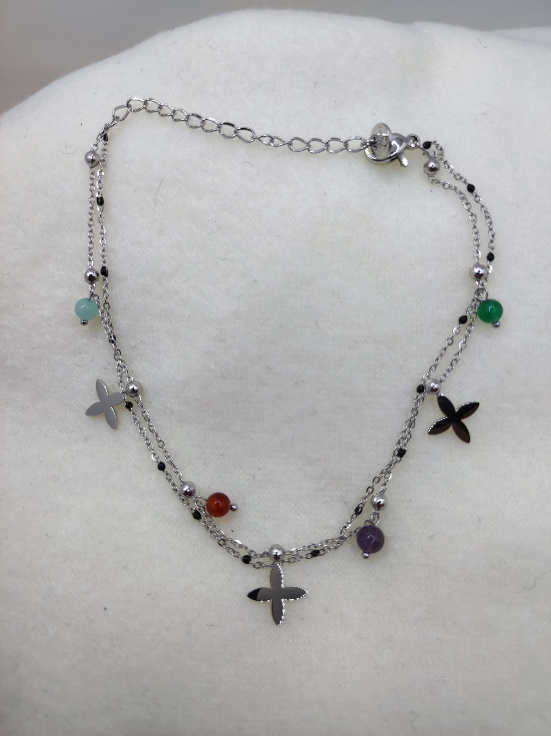 Découvrez ce ravissant bracelet de cheville en acier inoxydable de teinte argentée, parfait pour ajouter une touche de charme et d’élégance à votre style. Ce bijou délicat contient de jolies breloques avec ces jolies couleurs, qui lui confèrent immédiatement un caractère unique et captivant.
