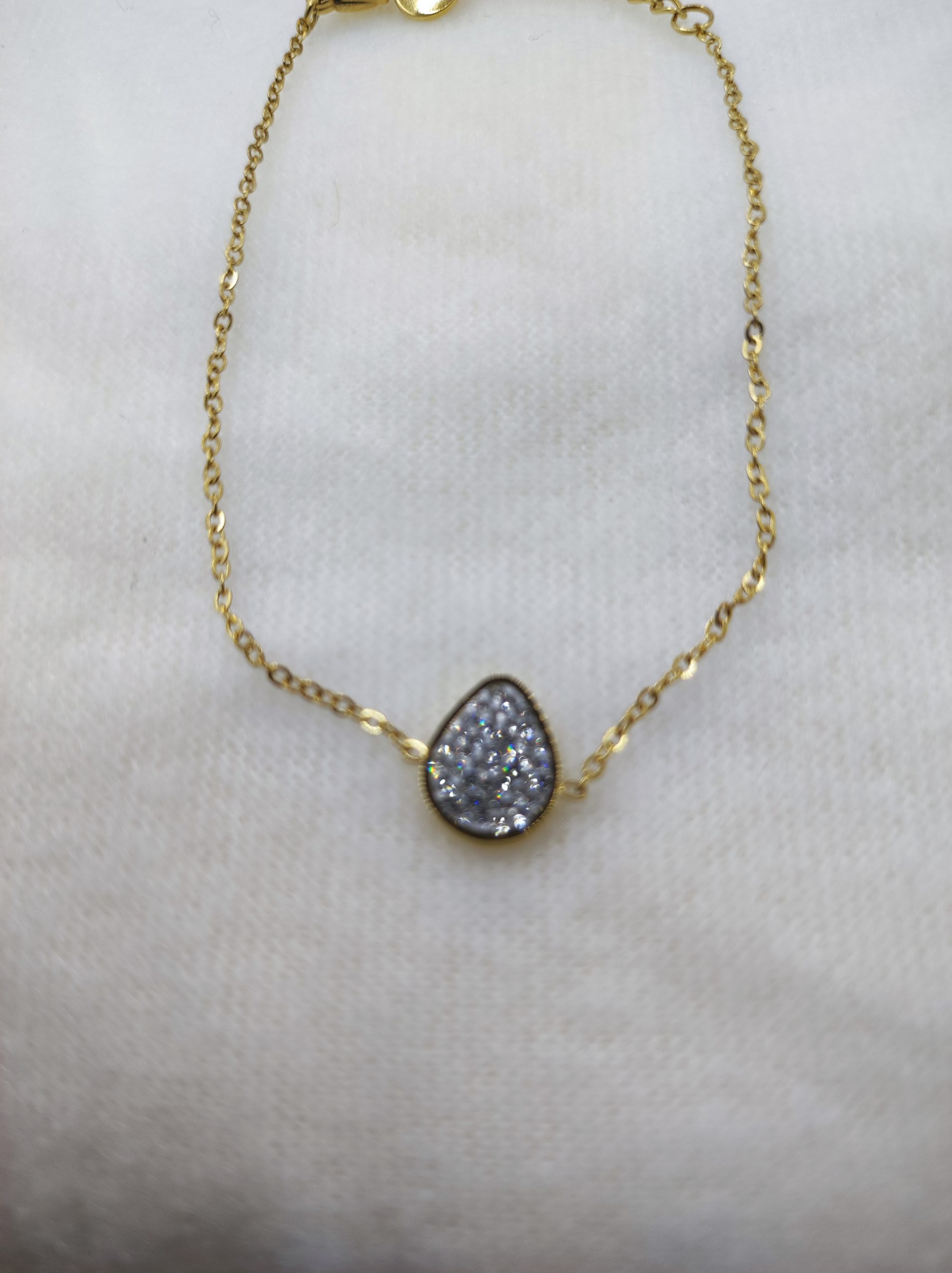 Bracelet en acier inoxydable avec strass en forme de larmes
