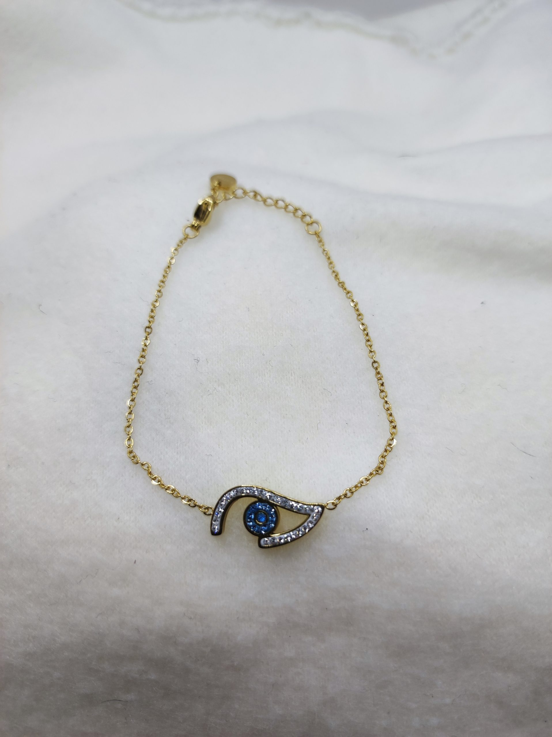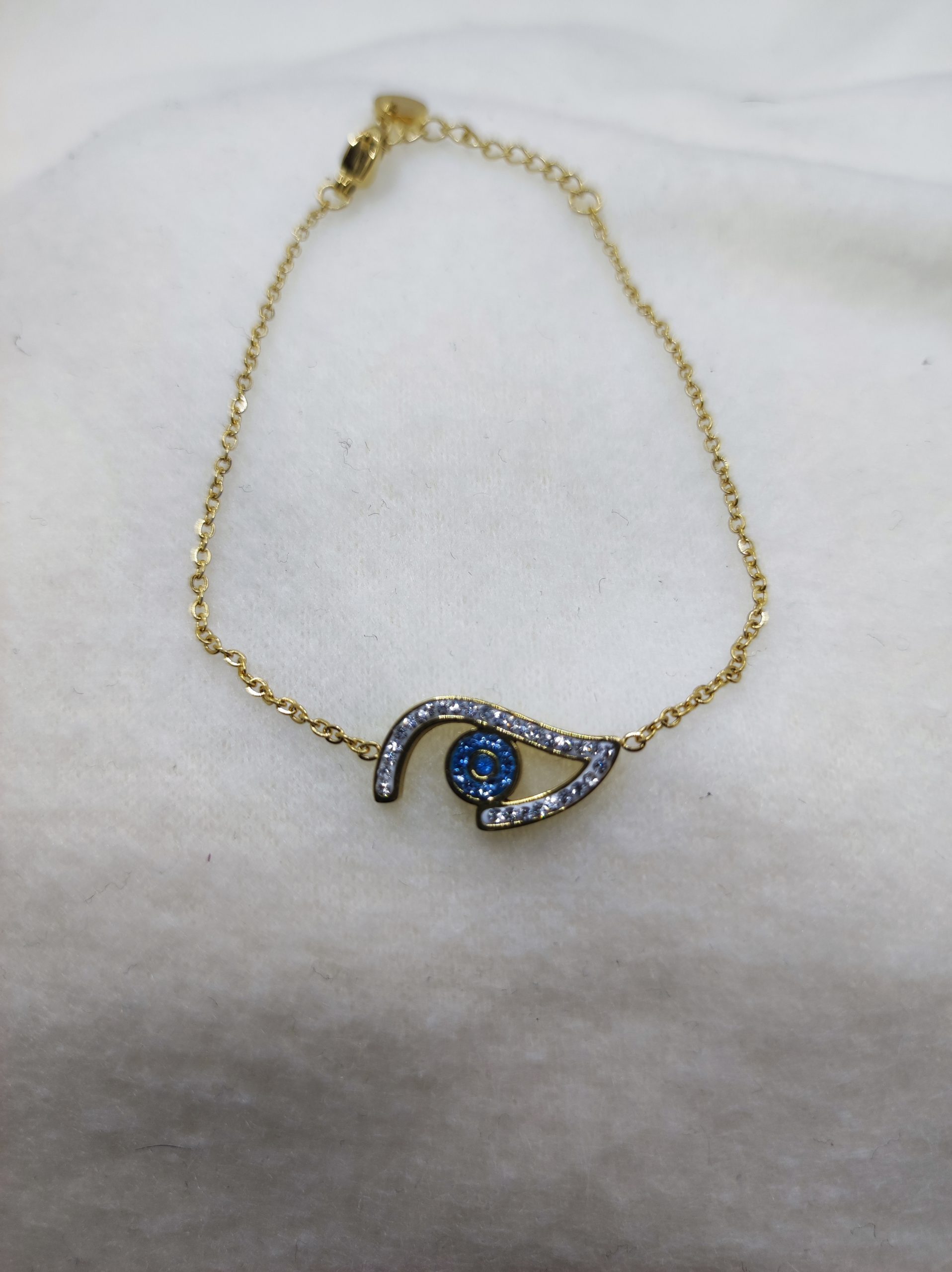 Bracelet en acier inoxydable doré avec strass bleu