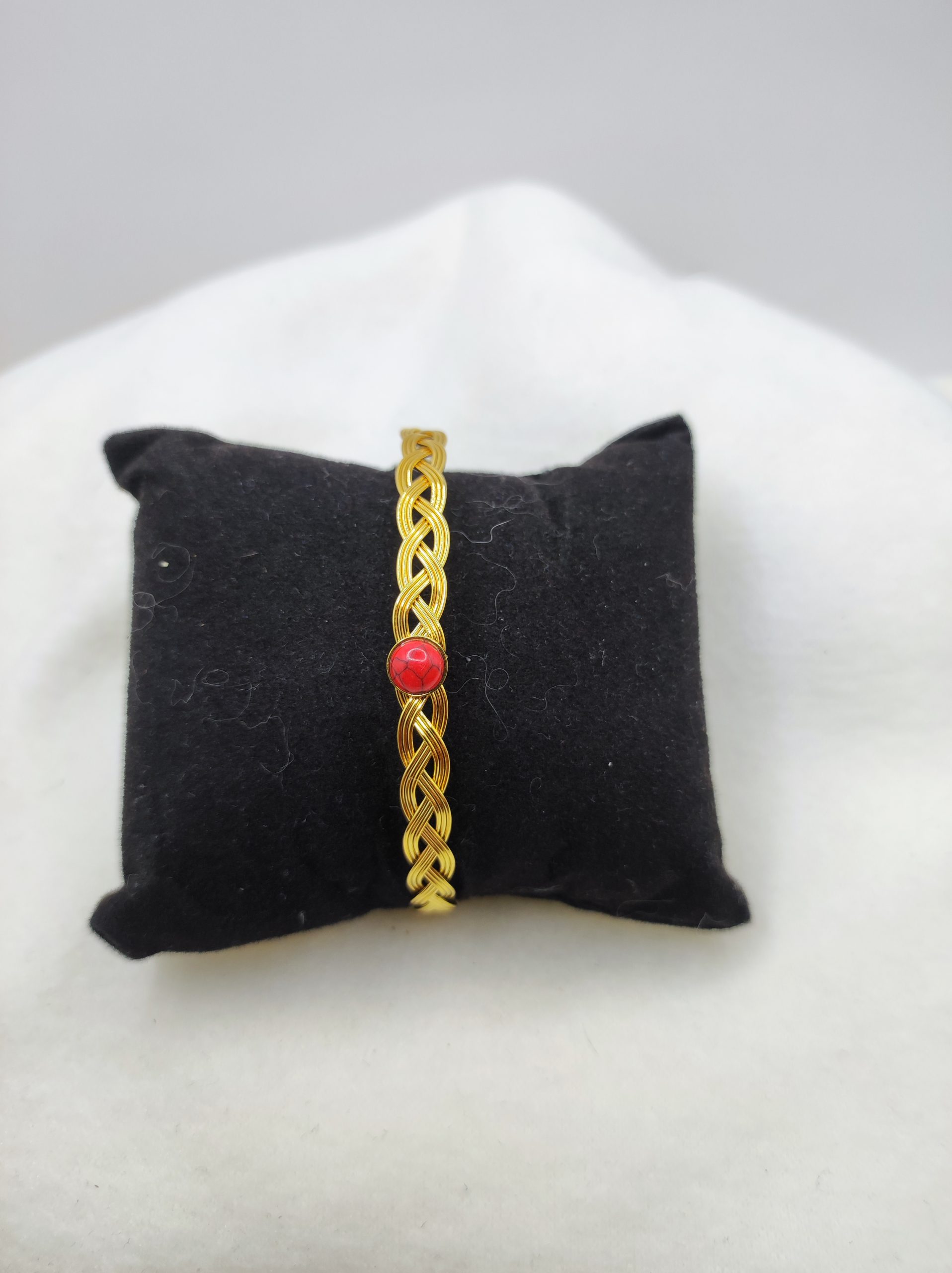 Le design tressé du bracelet apporte une texture unique et féminine mettant en valeur la beauté naturelle de l’acier inoxydable doré. La perle rouge, quant à elle, ajoute une touche de couleur vive et captivante, symbolisant la passion et l’énergie.