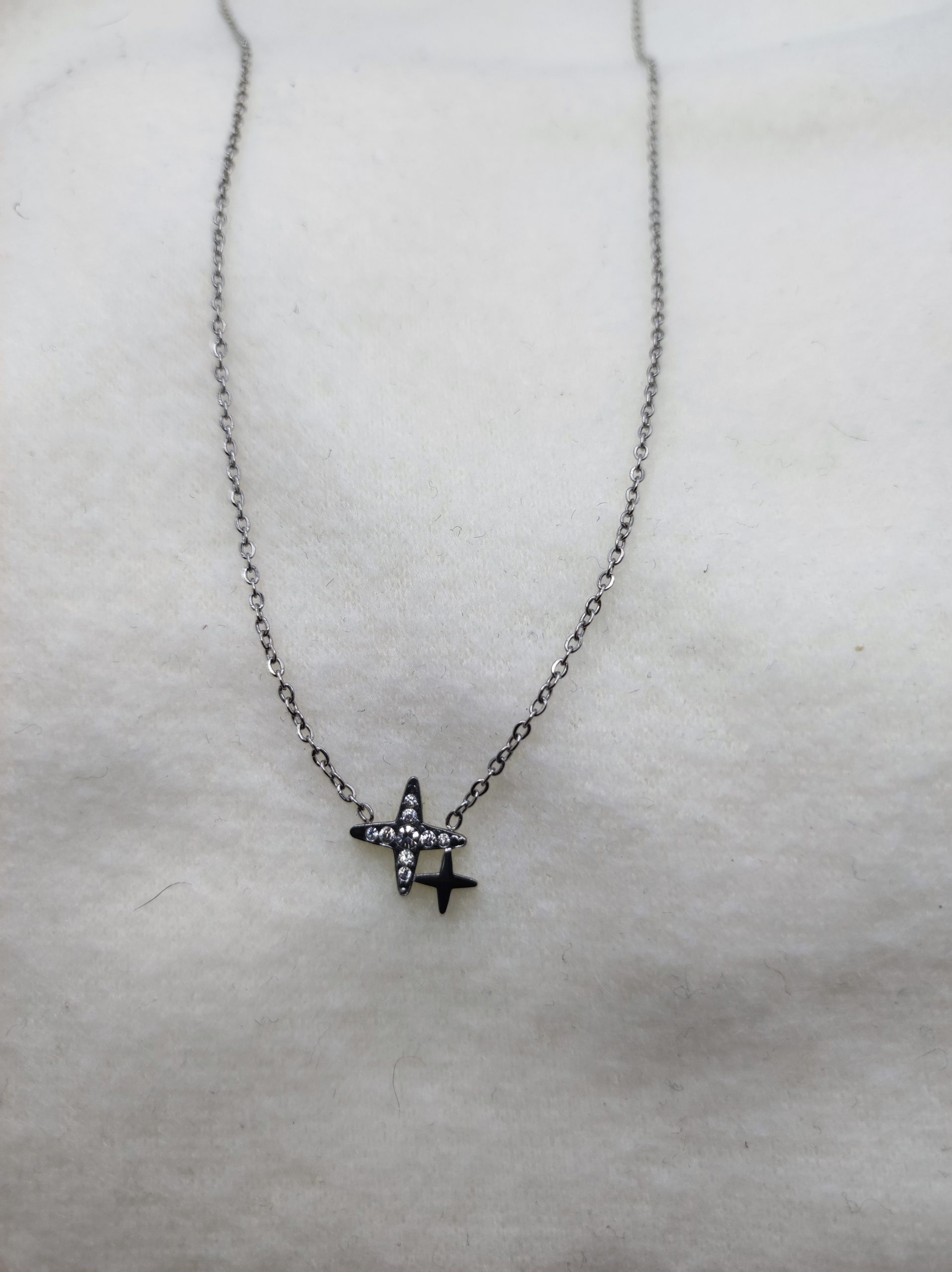 Le pendentif en forme d’étoile, finement détaillé, symbolise la lumière et l’aspiration à atteindre de nouveaux sommets. Chaque petit strass ajoute une touche de glamour et de sophistication à l’ensemble. Ces strass captent et reflètent la lumière à chaque mouvement, créant un jeu de scintillements qui attire tous les regards.